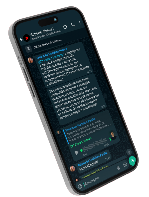 Uma comunidade no WhatsApp para troca de experiências, casos clínicos e avisos sobre conteúdos novos no Nutroflix